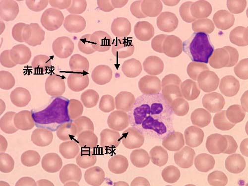 大きさ:白血球(10~20ミクロン)、赤血球(7~8ミクロン)、血小板(4~5ミクロン)